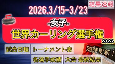 こんにちは、いまときです。 この記事では、世界女子カーリング選手権2026の結果速報をお伝えします。 大会期間は2026.3/15(日)〜3/23(月)です。時差は15時間です。 (adsbygoogle = window.adsbygoo...